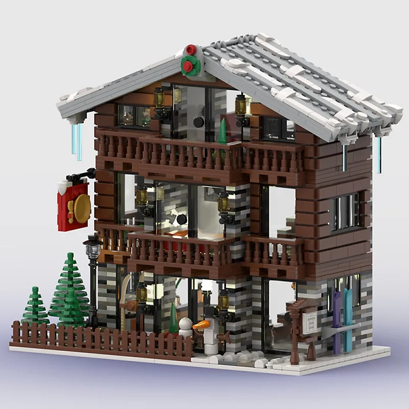 2231PCS MOC Christmas Alpine Lodges Building Blocks Creative Street View Winter Snow House Architecture Model Toys for Kid Gift